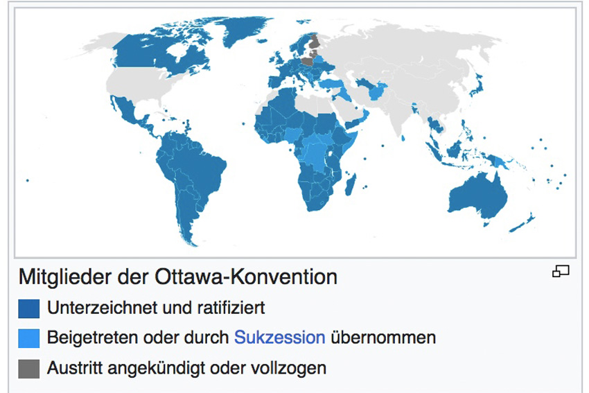 Bis vor Kurzem war dieses Verbot in 165 Ländern gültig – darunter allen EU-Mitgliedstaaten. Seit Inkrafttreten des Vertrags wurden Millionen Minen zerstört und ganze Regionen sicherer gemacht.