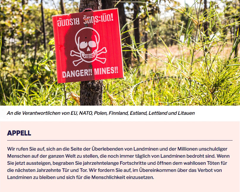GGL unterstützt die Petition der International Campaign to Ban Landmines (ICBL) & WeMove Europe, die sich gegen den Einsatz von Landminen in Europa und das Aufweichen des Minenverbotsvertrags richtet.